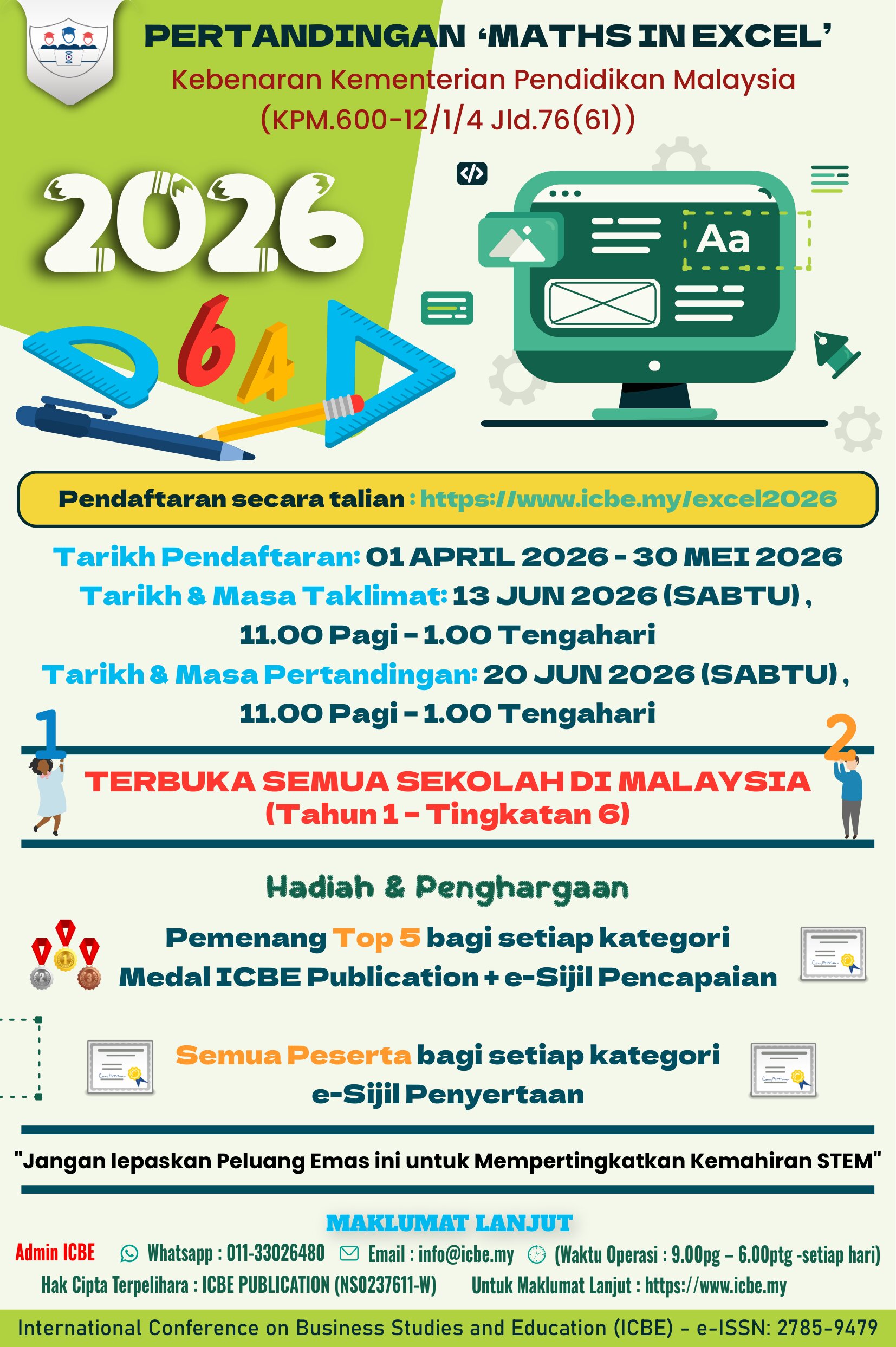 9. SemuaΒ Peserta WAJIB hadir TaklimatΒ Β Β β€œPertandinganΒ β€˜Maths in Excel’ Secara Talian 2026”  Secara TalianΒ padaΒ Β Β 13 June 2026 hari Sabtu pada pukulΒ  11.00 pagi – 1.00 tengahari dan Cikgu-cikgu ataupun ibubapa juga menggalakkan menghadirkan diri dalam taklimat ini untuk mengetahui proses-proses pertandingan.Β